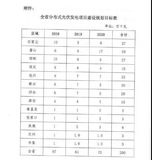 6月20日,河北省發(fā)展和改革委員會正式印發(fā)《全省分布式光伏發(fā)電建設指導意見(試行)》。意見中指出到2020年,力爭全省新增分布式光伏發(fā)電規(guī)模2GW,累計達到4GW,其中2018年計劃新增670MW。