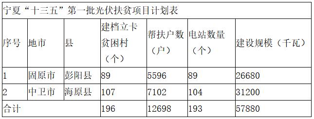 寧夏“十三五”第一批光伏扶貧項(xiàng)目計(jì)劃表