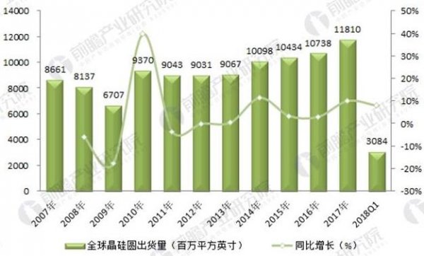 2017年全球硅晶圓出貨量118.10億平方英寸,連續(xù)四年打破歷史紀(jì)錄