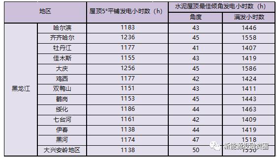 黑龍江省太陽能資源從地域分布來看,從東北向西南逐漸增加。各市的太陽能資源概況見下表。