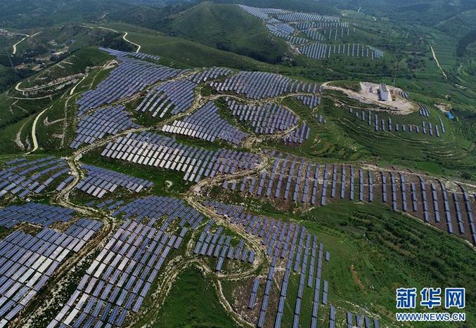這是河北省唐山市玉田縣石嶺口光伏發(fā)電場(8月11日無人機拍攝)。新華社記者楊世堯攝