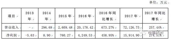分年度看。江蘇鼎陽(yáng)營(yíng)業(yè)收入從2015年的2,609.48萬(wàn)元增長(zhǎng)至2016年的20,178.42萬(wàn)元,同比增長(zhǎng)了673.27%;2017年則同比增長(zhǎng)了257.44%。江蘇鼎陽(yáng)從2014年至2017年?duì)I業(yè)收入年復(fù)合增長(zhǎng)率高達(dá)524.12%!