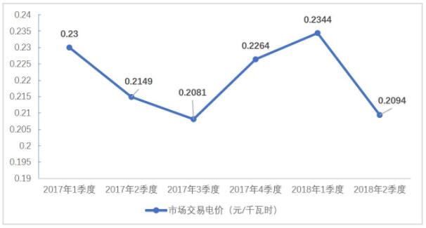 圖10 2017年-2018年2季度光伏市場交易電價(jià)走勢圖