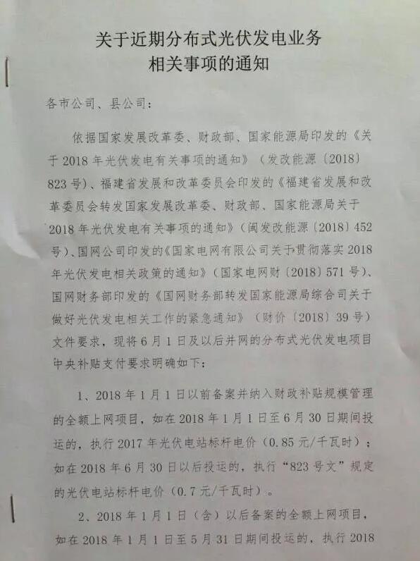 國(guó)網(wǎng)福建:2018年備案但531未并網(wǎng)項(xiàng)目不再納入中央補(bǔ)貼