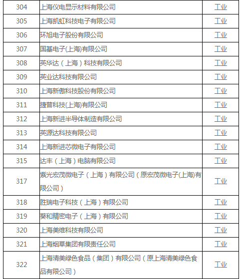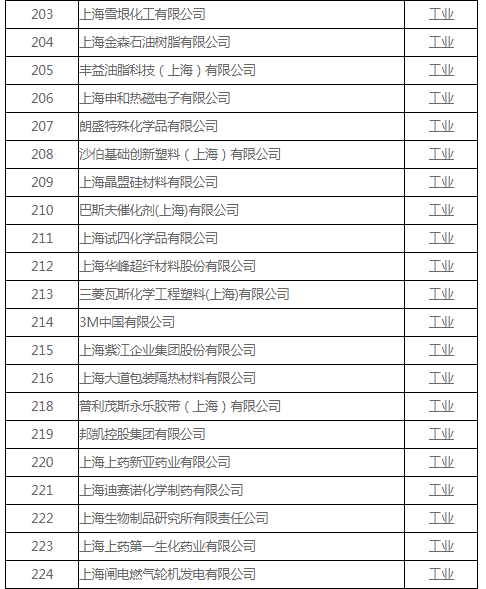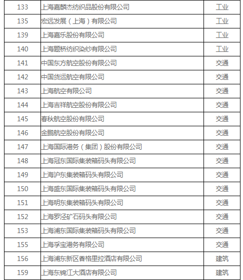 上海市碳排放交易納入配額管理的單位名單(2018版)