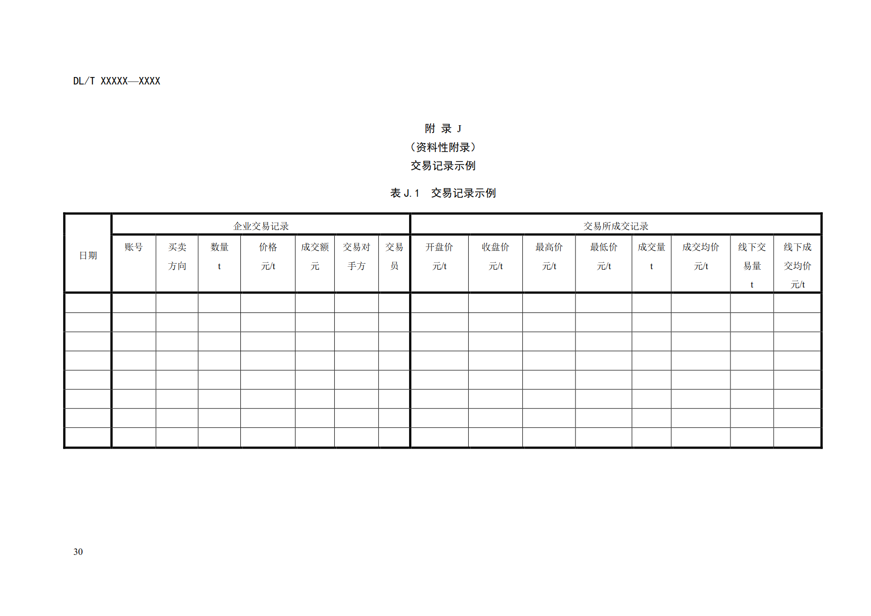 6.5.2.4.4 發(fā)電企業(yè)可實行交易日報、周報、月報制度,按規(guī)定記錄交易情況并存檔,交易記錄示例參見附錄J。