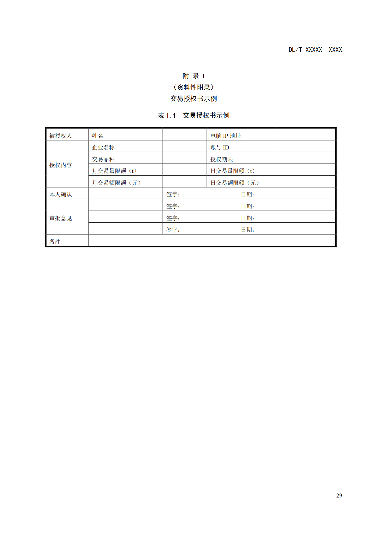 6.5.2.4.3 發(fā)電企業(yè)應(yīng)指定交易員并書面授權(quán),交易員在授權(quán)范圍內(nèi)執(zhí)行交易,交易授權(quán)書示例參見附錄I。