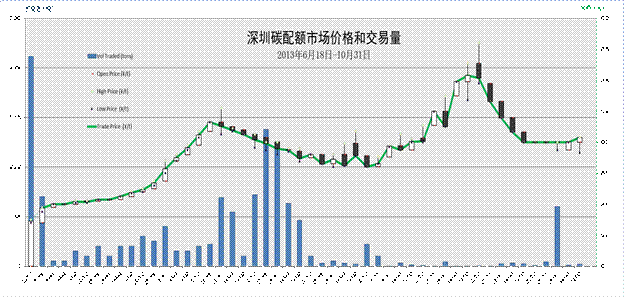 深圳碳排放權(quán)交易市場啟動(dòng)5個(gè)月以來,交易頻率不斷提高,自9月份以來已實(shí)現(xiàn)每日均有成交。截止 10月31日,總交易量超過12萬噸,總交易額高于800萬人民幣。