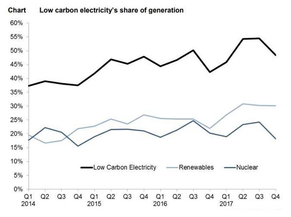 2017年英國(guó)發(fā)電結(jié)構(gòu):可再生能源增長(zhǎng)19%,低碳電源首超50%