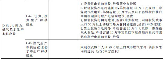 發(fā)電項(xiàng)目方面:投資核電站的建設(shè)、經(jīng)營(yíng)須中方控股。投資綜合水利樞紐的建設(shè)、經(jīng)營(yíng)須中方控股。限制投資電網(wǎng)的建設(shè)、經(jīng)營(yíng)(中方控股)。限制投資限制投資小電網(wǎng)范圍內(nèi),單機(jī)容量30萬千瓦及以下燃煤凝汽火電站、單機(jī)容量10萬千瓦燃煤凝汽抽汽兩用熱電聯(lián)產(chǎn)電站的建設(shè)、運(yùn)營(yíng)。禁止投資小電網(wǎng)范圍外,單機(jī)容量30萬千瓦及以下燃煤凝汽火電站、單機(jī)容量10萬千瓦燃煤凝汽抽汽兩用熱電聯(lián)產(chǎn)電站的建設(shè)、運(yùn)營(yíng)。