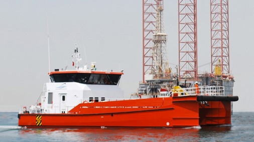 基于第一代運維船出現(xiàn)的各種問題,國內隨后出現(xiàn)鋼制傳統(tǒng)型雙體運維船、鋼鋁合金傳統(tǒng)型雙體運維船、全鋁合金傳統(tǒng)型雙體運維船等第二代雙體運維船。此傳統(tǒng)型雙體船的優(yōu)點吃水淺,航速高,興波阻力較小,具有良好的操縱性,穩(wěn)定性明顯優(yōu)于單體船,具備承受較大風浪的能力;且兩個片體對稱布置,使左右船艙里各系統(tǒng)的布置井然有序,增加了艙室內可用于儲物的空間;甲板上敞開的空間大,可以布置吊車或起吊設備,集裝箱等。由于雙體運維船的船體結構上的優(yōu)點,使得無論在船舶靜止或是處于航行狀態(tài),都可確保較小的移動幅度,這種船型是國內外風電場最主要的風電運維船型。