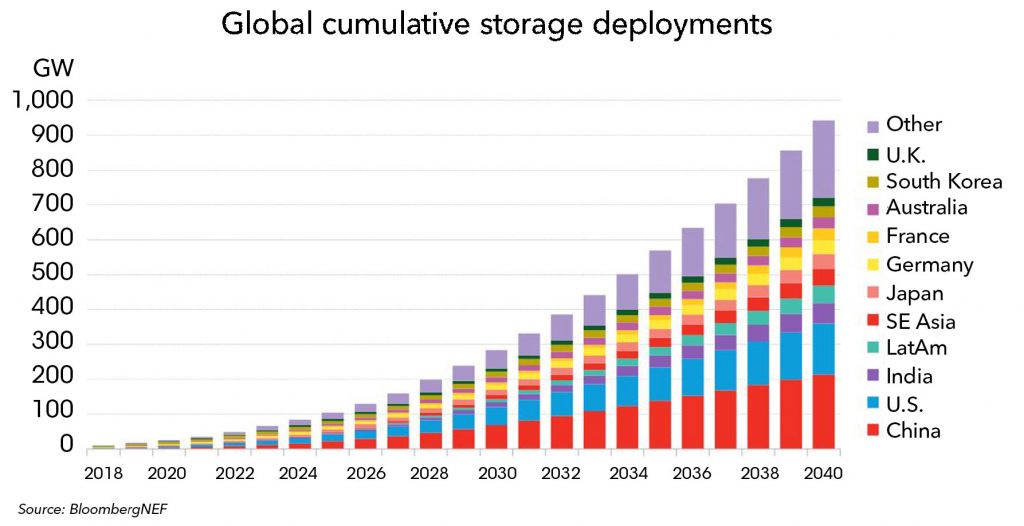 2040年全球能源存儲裝機容量有望增至942吉瓦