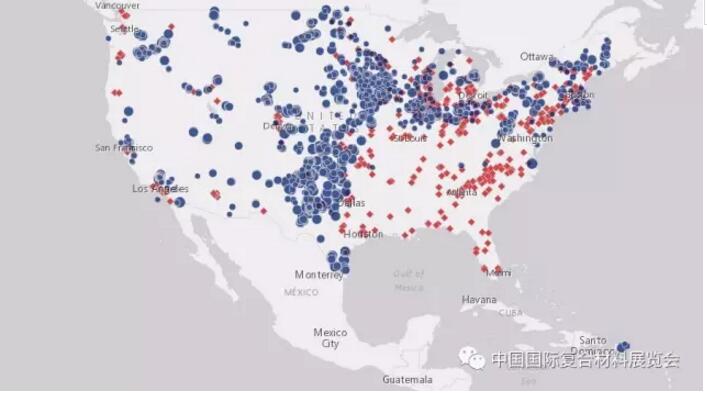 該地圖還標注了美國境內超過500家風電相關生產工廠。這些工廠在全美41個州內創(chuàng)造了大約2萬5千個就業(yè)崗位。