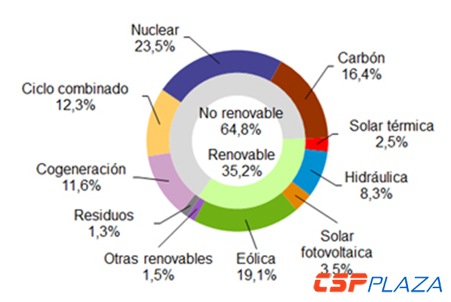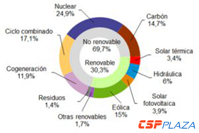 據(jù)CSPPLAZA此前報道,西班牙5、6、7、8月份光熱發(fā)電量分別占當月總發(fā)電量的3.4%、3.8%、4.1%與3.6%。