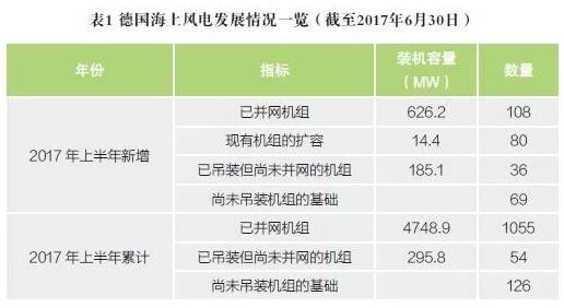 2017年上半年德國海上風(fēng)電新增并網(wǎng)容量640.6MW