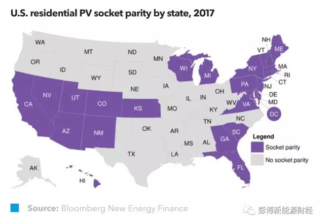 2017年,享受“電網(wǎng)平價”的美國家庭在全美家庭數(shù)中的比例
