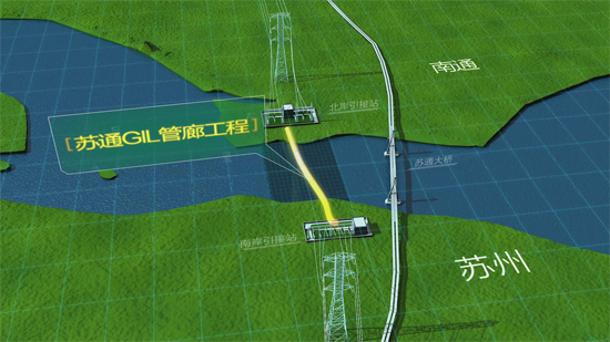 工程起于南岸(蘇州)引接站,止于北岸(南通)引接站,均位于江蘇蘇通大橋上游(西側(cè))1千米處,距離長(zhǎng)江南北岸大堤分別約200米、160米;1000千伏GIL管線單相長(zhǎng)達(dá)5.8千米,兩回6相總長(zhǎng)約35千米,其額定電流為6300安;兩端通過(guò)地面引接站內(nèi)的門(mén)形架構(gòu)與特高壓線路連接,分別引接至1000千伏泰州站和1000千伏蘇州站。