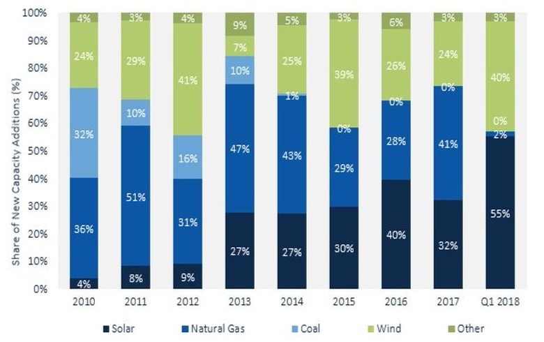 此外,太陽能光伏在第一季度占美國所有新增電力產(chǎn)能的55%,這是一個相對強勁的表現(xiàn),因為政治風向的變化。