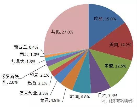 圖2 2017年中國(guó)貿(mào)易伙伴國(guó)貿(mào)易額占比