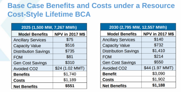 該路線圖包括到2025年部署1500兆瓦時(shí)的儲(chǔ)能目標(biāo),以及到2030年部署2795兆瓦時(shí)的儲(chǔ)能目標(biāo)的成本預(yù)測(cè)。它使用了Acelerex公司的一項(xiàng)分析,估計(jì)2030年的儲(chǔ)能部署將通過通過計(jì)算從緩解電網(wǎng)擁塞、配電節(jié)約、避免二氧化碳排放的成本和其他收益為納稅人帶來超過11億美元的凈收益。