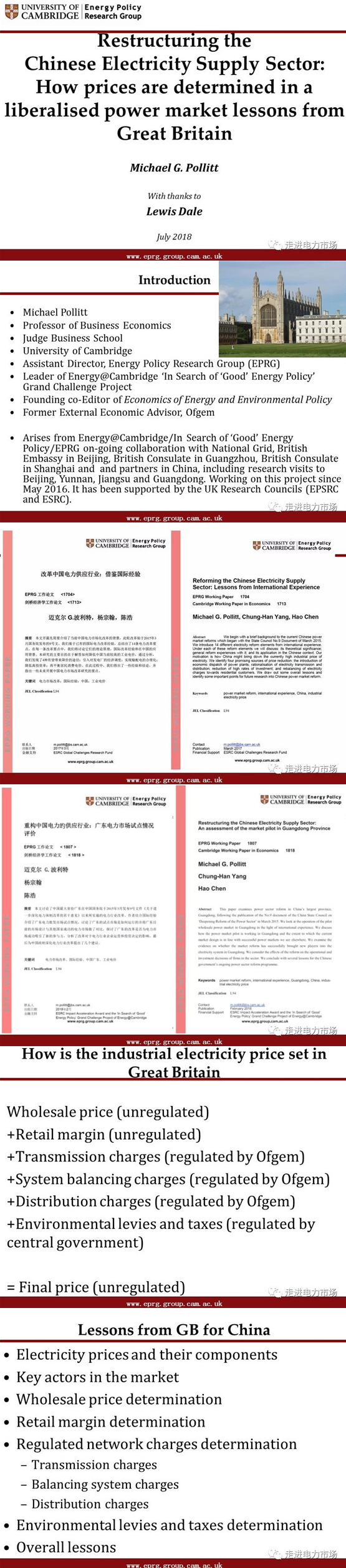 Pollitt教授本次關(guān)于英國電價(jià)形成機(jī)制及可供中國電改借鑒的經(jīng)驗(yàn)的相關(guān)ppt展示如下: