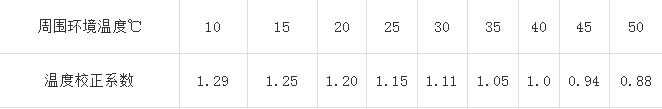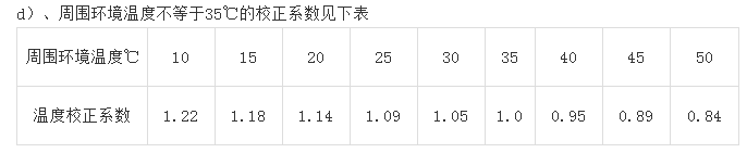 c)、周圍環(huán)境溫度不等于40℃的校正系數(shù)見下表