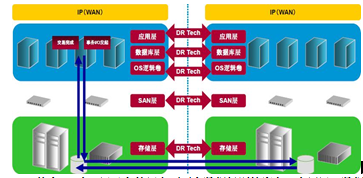 其中,SAN層及存儲(chǔ)層主要面向數(shù)據(jù)級別的容災(zāi),應(yīng)用層、數(shù)據(jù)庫層及邏輯卷層主要面向業(yè)務(wù)及應(yīng)用級別的容災(zāi)。數(shù)據(jù)級容災(zāi)通常是應(yīng)用級容災(zāi)的基礎(chǔ)。