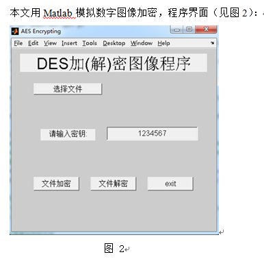 本文用Matlab模擬數(shù)字圖像加密,程序界面(見(jiàn)圖2):