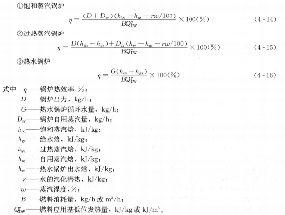 說明:(1)當(dāng)使用鍋爐系統(tǒng)以外的熱源對燃料和空氣進行加熱時,來熱量QwL。(kj/kg或kj/m3)應(yīng)測算并計入鍋爐輸入熱量中。