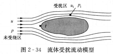 假設(shè)一流體低速水平流動,密度為常數(shù),不可壓縮,繞過一物體,見圖2-34,根據(jù)理想流體繞物體流動的位流理論,由一維水平穩(wěn)定流動的微積分方程式,可以寫出: