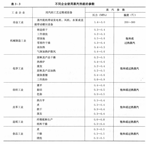 在工業(yè)企業(yè)中,中、低參數(shù)的熱能使用最廣泛,見(jiàn)表3-3。