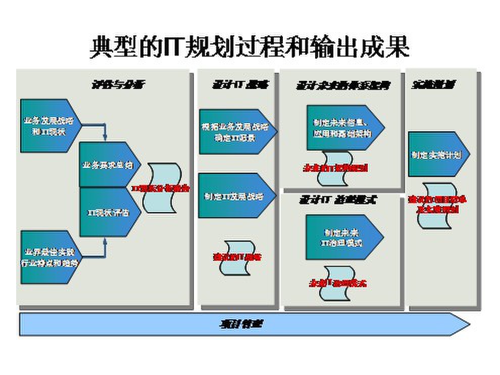 根據(jù)企業(yè)的現(xiàn)狀和要達(dá)到的目標(biāo),進(jìn)行未來(lái)3~5年的項(xiàng)目定義和劃分,并制定總體的實(shí)施時(shí)間表和投資計(jì)劃,為今后的IT建設(shè)提供明確的操作指導(dǎo)。