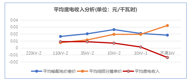 圖三:全國輸配電價(jià)各電壓等級(jí)電度電價(jià)平均度電收入分析圖