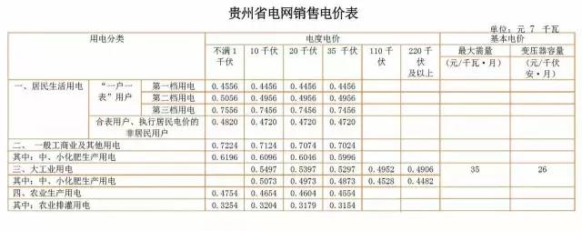 貴州省電網(wǎng)銷售電價圖