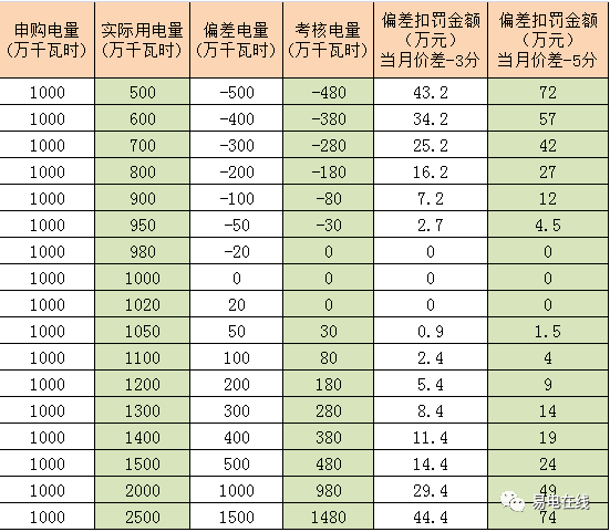 2%,假設(shè)用戶(hù)月電量申購(gòu)1000萬(wàn)度,其實(shí)際用電量980--1020萬(wàn)度之間免責(zé),不在此范圍內(nèi)的電量都需要按照2倍的月競(jìng)出清價(jià)格絕對(duì)值進(jìn)行考核。