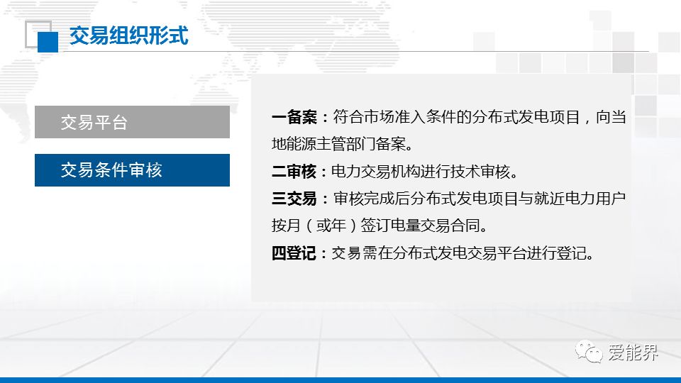 分布式發(fā)電是接入配電網運行、發(fā)電量就近消納的中小型發(fā)電設施。分布式發(fā)電項目與配電網內就近符合交易條件的電力用戶進行電力交易,并以電
