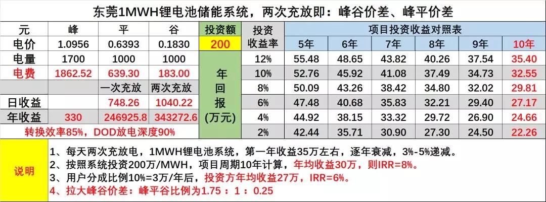 (圖3:峰谷價(jià)差沒拉大前的投資收益)