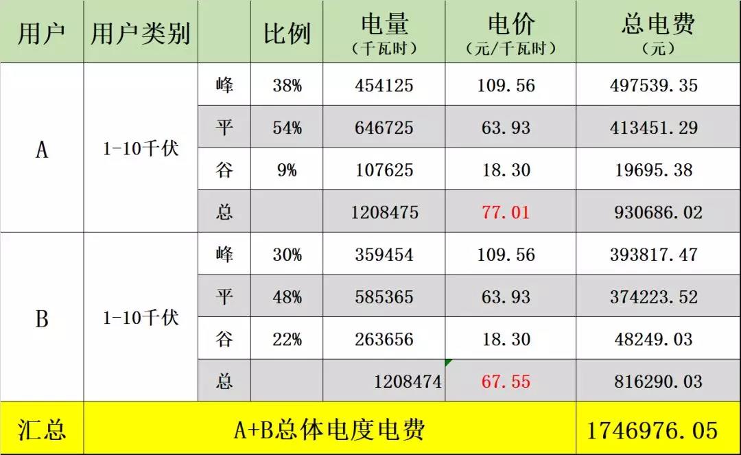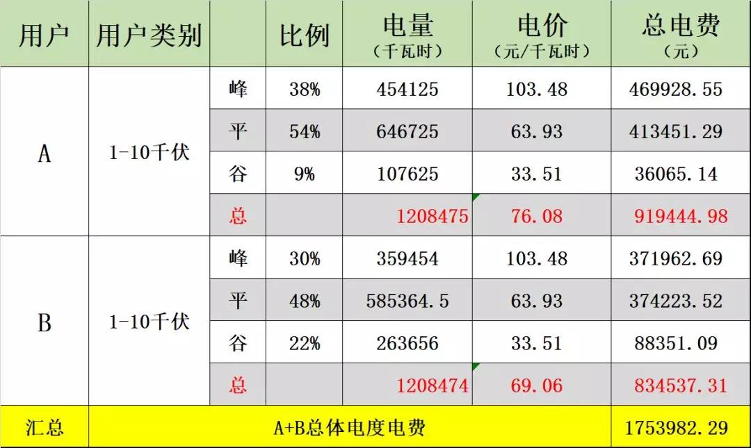 (圖7:調(diào)整前A、B兩企業(yè)的總體電費(fèi))