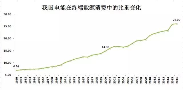 能源消費(fèi)方式在轉(zhuǎn)型。“十二五”以來,水電、風(fēng)電和太陽能發(fā)電對(duì)我國(guó)能源消費(fèi)增量的貢獻(xiàn)很大,2010年-2016年期間貢獻(xiàn)率達(dá)到了32%,這必然加速了全社會(huì)電氣化水平的提升,另外技術(shù)創(chuàng)新也促進(jìn)了終端能源消費(fèi)向以電力為核心的方式轉(zhuǎn)型,電能在終端能源消費(fèi)中的比重在加快提高,目前已經(jīng)超過歐美發(fā)達(dá)國(guó)家水平。