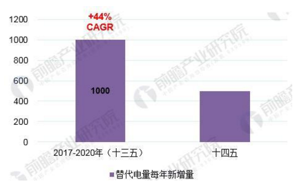 2020年電能替代新增用電量約4500kWh,“十三五”期間我國(guó)電能替代潛力巨大
