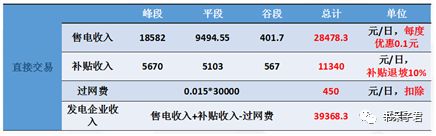 因此直接交易模式的發(fā)電收入如下表所示。