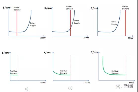 電力市場(chǎng)中,如果由于缺少一家發(fā)電方就無(wú)法滿足需求,則該供電方被稱為關(guān)鍵供應(yīng)商(pivotalfirms)。Brandts, Reynolds and Schram (2013)找出了關(guān)鍵供應(yīng)商具有操縱市場(chǎng)力的證據(jù)。另一種方法就是通過(guò)剩余需求曲線。需要注意的是,對(duì)于關(guān)鍵供應(yīng)商而言,剩余需求曲線在一些價(jià)格之上時(shí)是沒(méi)有彈性的。