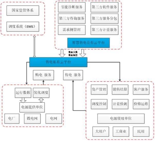 售電云支持系統(tǒng)包括客戶檔案、售電合約、購(gòu)電交易、電價(jià)套餐、電費(fèi)計(jì)算、收費(fèi)管理、網(wǎng)上營(yíng)業(yè)廳、移動(dòng)應(yīng)用、輔助決策、能效管理、需求響應(yīng)、設(shè)備監(jiān)控共計(jì)12個(gè)業(yè)務(wù)模塊。