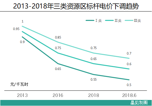 從文件下發(fā)日起,新投運(yùn)的光伏電站標(biāo)桿上網(wǎng)電價(jià)每千瓦時(shí)統(tǒng)一下降0.05元,一至三類資源區(qū)的上網(wǎng)電價(jià)也就依次變成0.5~0.7元(含稅);