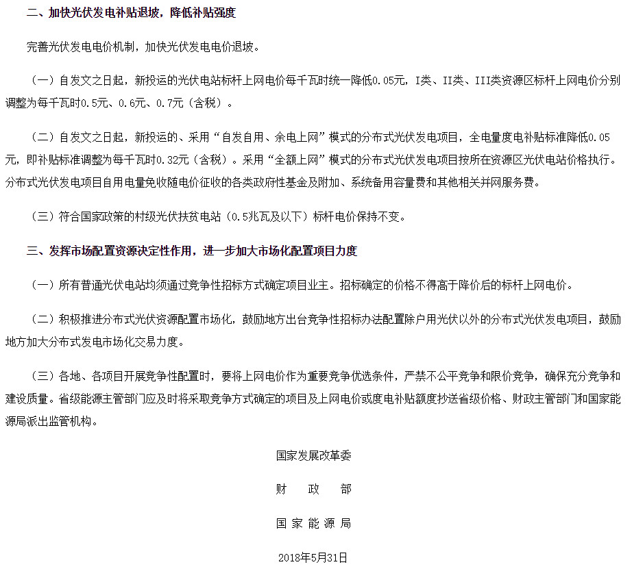 6月1日,國(guó)家能源局出臺(tái)了《關(guān)于2018年光伏發(fā)電有關(guān)事項(xiàng)的通知》: