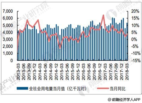 電力行業(yè)是國民經(jīng)濟(jì)發(fā)展中最重要的基礎(chǔ)能源產(chǎn)業(yè),是國民經(jīng)濟(jì)的第一基礎(chǔ)產(chǎn)業(yè),是關(guān)系國計(jì)民生的基礎(chǔ)產(chǎn)業(yè),是世界各國經(jīng)濟(jì)發(fā)展戰(zhàn)略中的優(yōu)先發(fā)展重點(diǎn)。據(jù)前瞻產(chǎn)業(yè)研究院發(fā)布時(shí)《售電公司發(fā)展模式與投資戰(zhàn)略規(guī)劃分析報(bào)告》數(shù)據(jù)顯示, 2018年1-3月,我國全社會(huì)用電量15878億千瓦時(shí),同比增長9.8%,增速比上年同期提高2.9個(gè)百分點(diǎn)。3月,全社會(huì)用電量5325億千瓦時(shí),同比增長3.6%,增速比上年同期回落4.3個(gè)百分點(diǎn)。