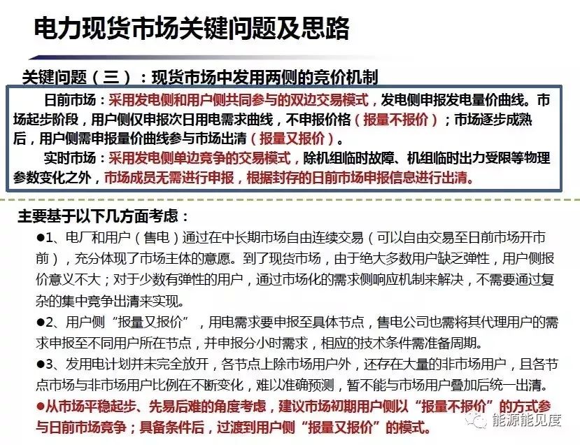 晶見思考:如果用電需求方需要申報價格,那么就需要考慮節(jié)點電價的問題,用電需求要申報到具體節(jié)點,大用戶還好說,可以明確具體節(jié)點,像廣東市場的絕大多數(shù)售電公司如果要將其代理的所有用戶申報至不同用戶所在節(jié)點,并申報分時段需求,這個挑戰(zhàn)太大了。