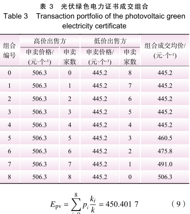 在光伏綠色電力證書交易中,16 家滿足認(rèn)購公告要求的申賣方,各自隨機(jī)獨(dú)立決策是否參與申賣,各種可能成交組合見表 3。