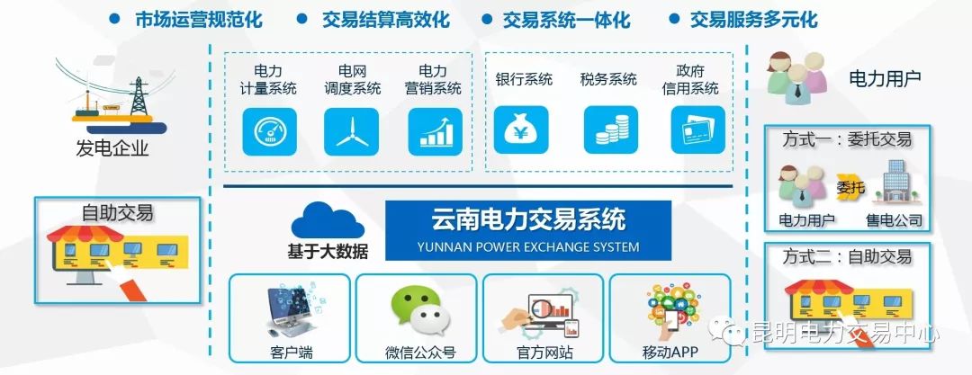 2014 年,南方電網(wǎng)云南公司配合政府相關(guān)部門探索組建了云南電力交易中心,準(zhǔn)確把握“公益性服務(wù)平臺(tái)”定位,聚焦電力交易服務(wù)能力的持續(xù)提升,形成了1個(gè)電力運(yùn)行與交易平臺(tái);購電、售電2 類主體;省內(nèi)、西電東送、清潔能源3 個(gè)市場;雙邊協(xié)商、集中撮合、自主掛牌、合約轉(zhuǎn)讓4 種交易模式。2016 年8 月25 日,在云南電力交易中心成功試點(diǎn)的基礎(chǔ)上,正式掛牌成立昆明電力交易中心,成為全國第一家由電網(wǎng)企業(yè)相對控股的公司制電力交易機(jī)構(gòu),股東涵蓋電網(wǎng)企業(yè)、發(fā)電企業(yè)、電力用戶、地方電力企業(yè)等各類主體。