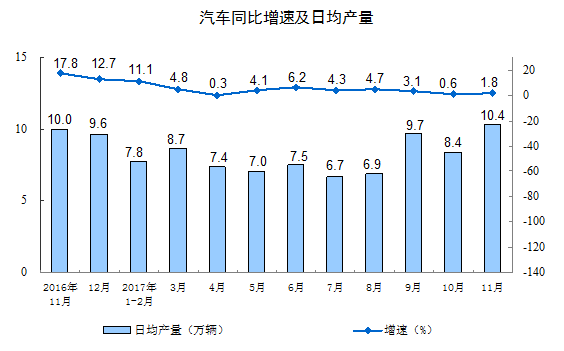 今日統(tǒng)計局發(fā)布數(shù)據(jù),2017年11月份,規(guī)模以上工業(yè)增加值同比實際增長6 1%(以下增加值增速均為扣除價格因素的實際增長率),比10月份回落0 1個百分點。從環(huán)比看,11月份,規(guī)模以上工業(yè)增加值比上月增長0 48%。1-